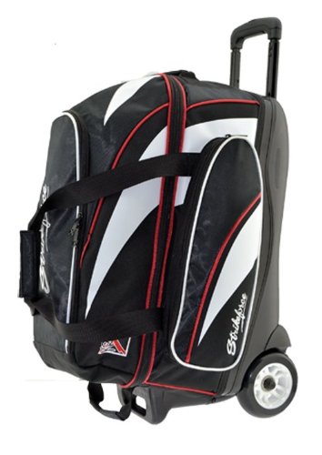 I'm going from a 3 ball bag to a 2 ball bag with a Joey bag. I've had it for 2 months now and like it much better. I really like the larger wheels on this bag compared to my old bag. It never tips on its own. It does tip sometimes with the Joey bag, but only if I'm in a hurry and don't get the Joey bag to sit correctly. The top of the bag where the Joey bag sits is not flat, so it can move on you if you don't set it between the handle bars properly. The shoe storage is a good size.
