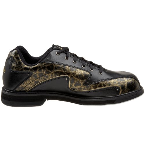 Etonic Stabilite Mens Action Blk/Gold Right HandRIGHT HAND BOWLER Traction Sole: One piece Multi-Zoned Goodyear rubber outsole with low friction toe cap for durability Enhanced comfort Flexbars Lightweight, flexible EVA midsole Slide sole: PS8 Perfect Slide microfiber technology provides a long, controlled slide Dense, flared EVA midsole enhances stability Perfect Brake - newly developed Goodyear rubber compound with a raised heel for accurate braking control Features and Benefits: Comfort lining for performance and breathability Elastic tongue straps hold tongue in place for secure comfortable fit In-Shoe Performance: Anti-fungal, anti-bacterial footbed, wicks moisture, with slow rebound shock absorption capability Exclusive CAT'S TONGUE directional fabric in slide shoe holds foot stationaryProduct Type: Bowling Shoes